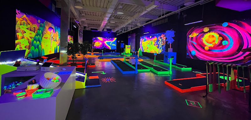 Planet X Mini Glow Golf is a recreational facility featuring a miniature golf course designed as a scaled-down version of traditional golf. The course is constructed on a small, artificial layout with various obstacles and challenges such as tunnels, windmills, ramps, and waterfalls. It is designed to be imaginative and whimsical, with each hole serving as a mini-adventure featuring colorful, themed obstacles. The venue is accessible to people of all ages and skill levels, providing an opportunity for interaction, camaraderie, and friendly competition among players. The facility operates with varying hours throughout the week and is located in Square One Mall in Saugus, MA.
