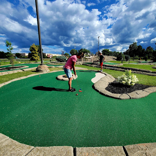 Apex Sports & Entertainment is a multi-sport entertainment venue featuring a comprehensive range of activities. The facility includes four indoor TrackMan golf simulator bays, an outdoor driving range, an 18-hole dinosaur-themed miniature golf course, four sand volleyball courts, and upcoming batting cages. A full-service bar offers snacks, drinks, and local brews to complement the experience. The simulators are available by reservation or walk-in, with options for individual practice, group play, and various leagues. They cater to all skill levels, from beginners to serious golfers, as well as those seeking family-friendly entertainment or corporate events.