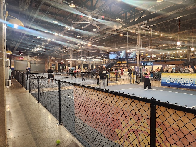 Tipsy Pickle is a 23,000 sq ft entertainment destination in Charlotte, NC, operating as a golf simulator and multi-sport bar. It combines indoor golf simulators with a variety of other recreational activities like pickleball, ping pong, and cornhole, all complemented by a full-service Tex-Mex kitchen and bar. The venue features trackman golf simulators and is designed for both casual play and social gatherings, offering a relaxed atmosphere for food, drinks, and games.