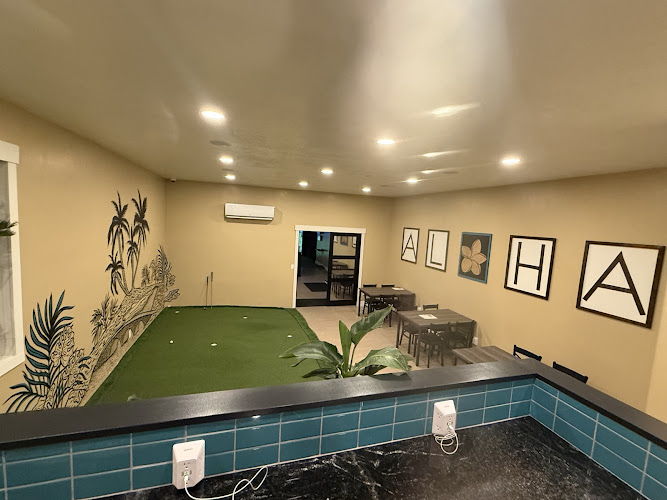Aloha Golf and Coffee Lounge is a golf simulator and full-service coffee shop located in Layton, Utah. Owned by Tongan-American family Kama and Amy Muti, the venue combines an elevated golf simulation experience with a unique Polynesian-themed menu featuring Kona espresso and specialty drinks like the Golden Island Latte and Mango Smoothie. The facility utilizes the latest Trackman IO technology simulators and features a 22-foot putting green to provide a comprehensive golf experience alongside their coffee offerings. The atmosphere is designed to be warm and inclusive, welcoming guests as part of their ohana (family), with a mission centered on compassion, kindness, and aloha spirit.